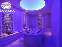 Spa katının projelendirme ve uygulaması anahtar teslim olarak yapılmıştır. Spa alanı içerisinde resepsiyon, masaj odaları, dinlenme alanı, sauna, buhar odası, türk hamamı, kese odası, şok duş, duş ve vitamin bar olarak tasarlanmıştır.